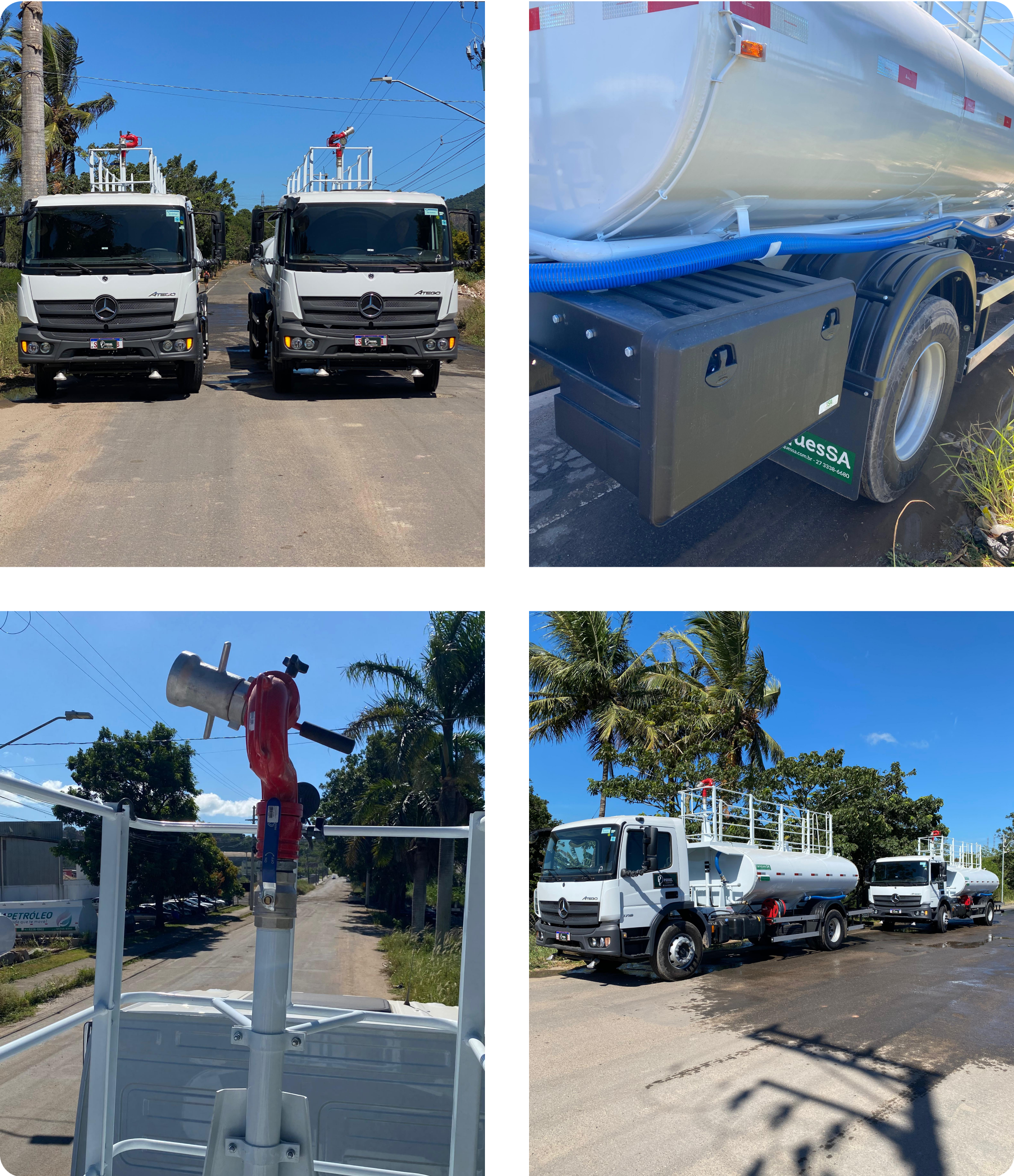Nossos veículos são equipados com Canhão, Carretel de Mangueira, Rabo de Pavão e Chuveiro com acionamento interno, proporcionando maior versatilidade e precisão no abastecimento.